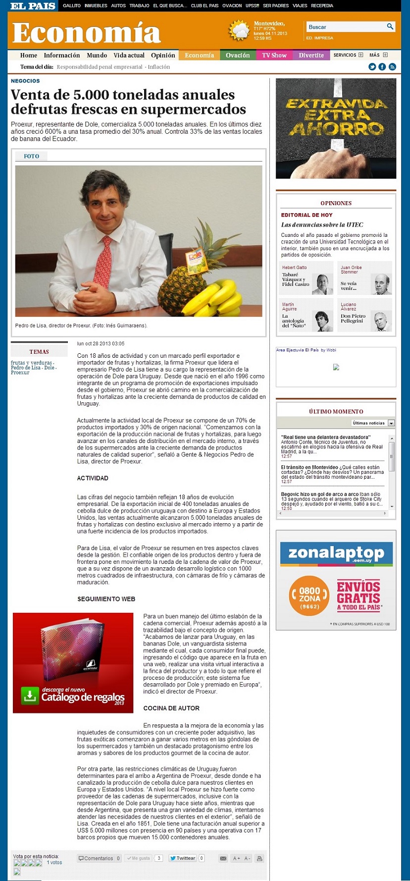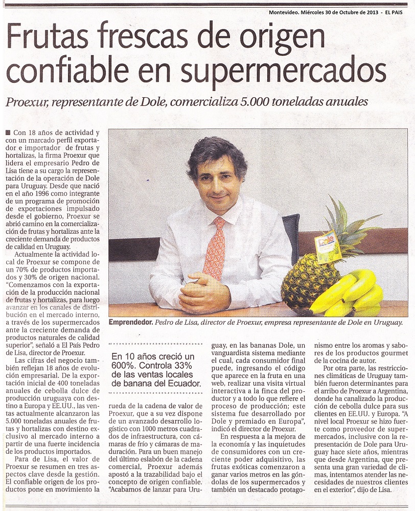 Diario El PAIS - Proexur - DOLE en Uruguay